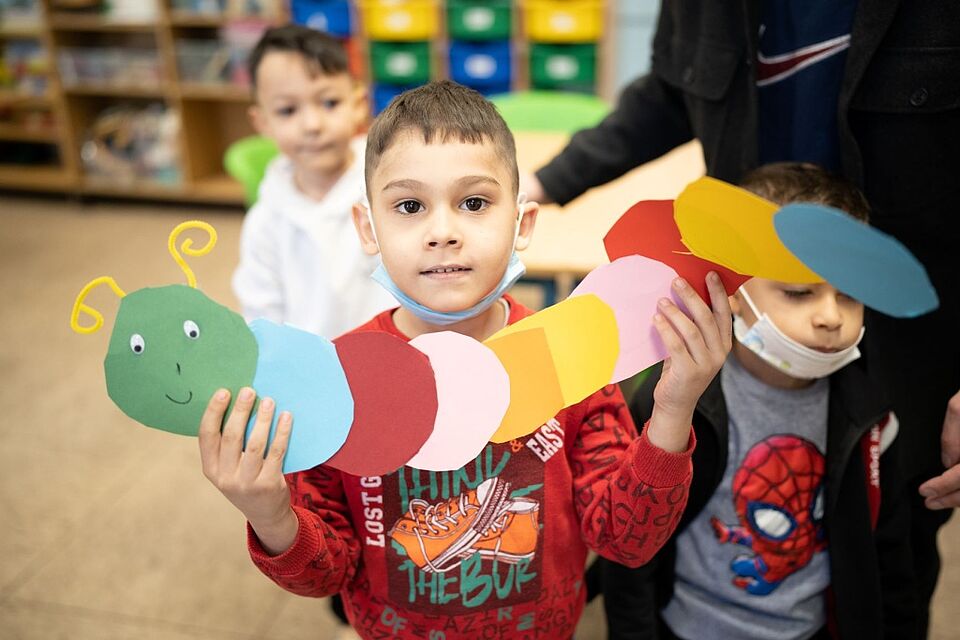 ,,Es ist der Wahnsinn, dass wir das geschafft haben“ freut sich Anna Žalac, Leiterin der DRK-Bildungswerke Duisburg, nachdem sie den Scheck über 10.000€ für den 2.Platz in der Kategorie ,,Lokales Bündnis für frühe Bildung 2022“ entgegen genommen hat.