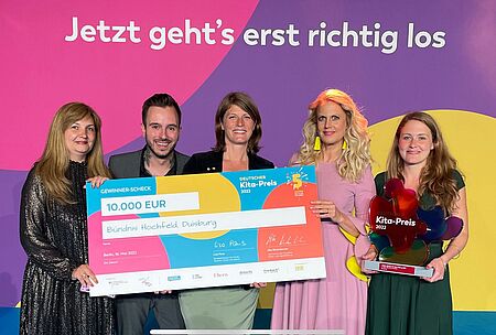 Unser "Bündnis Hochfeld" wurde beim Deutschen Kita-Preis unter die zehn Finalisten gewählt! Das ist gleichzeitig unser Ticket für die Preisverleihung des Deutschen Kita-Preises im Frühsommer 2022 in Berlin. Dort wird dann bekannt gegeben, welches Bündnis mit dem ersten Platz und einem Preisgeld in Höhe von 25.000 Euro ausgezeichnet wird. Die Zweitplatzieren dürfen sich über jeweils 10.000 Euro freuen.