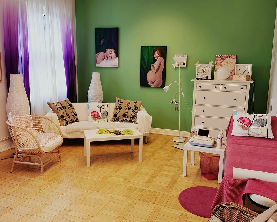 Die Praxis befindet sich in der ersten Etage und bietet eine schöne und familiäre Atmosphäre. In der Schwangeren- und Wöchnerinnenambulanz wird allen Müttern hier eine umfassende Betreuung angeboten.